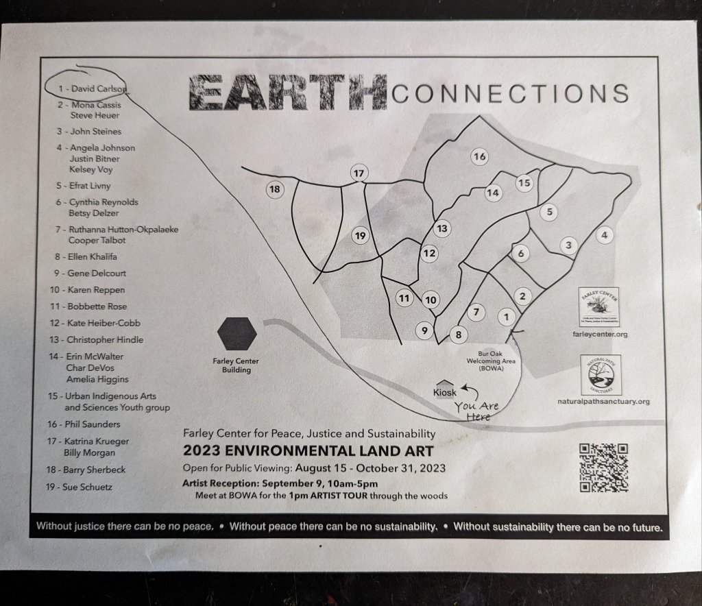 I was relieved to see that my installation was intact. In fact nature joined in when a vine started to climb upwards.