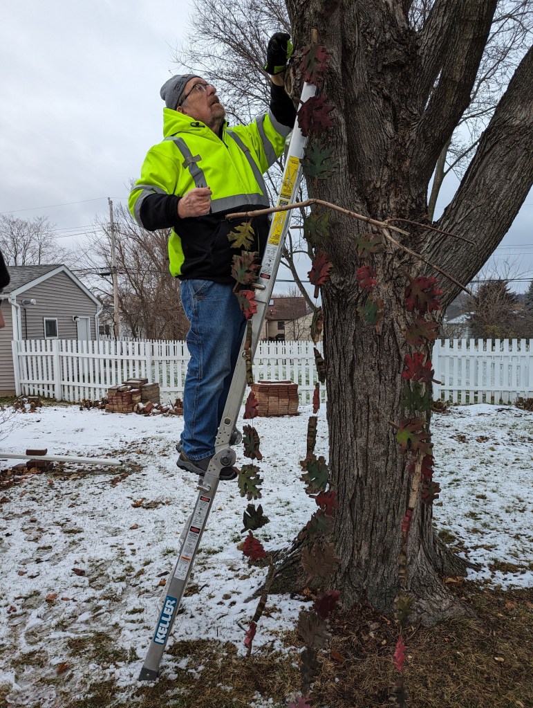 It could be a simple statement of fact: “Fall leaves fall.” It is what happens every year. It could be a direct request: “Fall leaves, Fall.” as if we could somehow could encourage this to happen. I see it as a celebration: “Fall leaves fall!” This installation celebrates the symmetry of drawing from the soil, the ground water and sunlight set beside the death and decay as the leaves become mulch and nutrition. We may call it a design or a happy accident. It happens without us, though we through our lack of care could disrupt it. Isn’t it better to celebrate and enjoy the benefits?