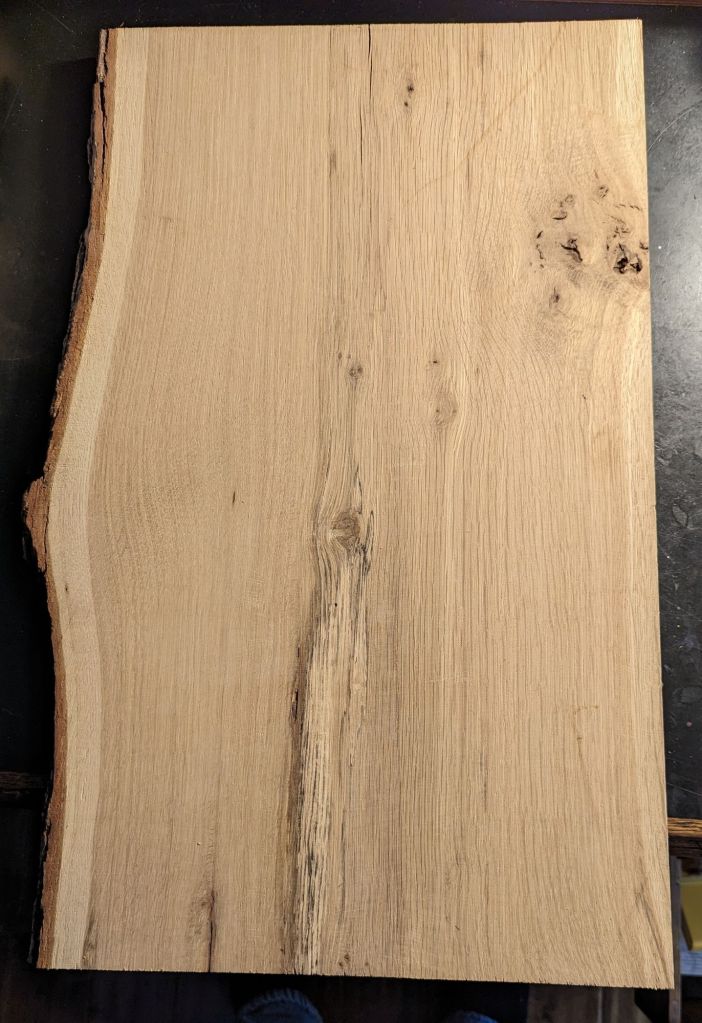 I will be “drawing” with a woodworking tool on this live edge board. The idea is to make it like a line drawing. To get the contrast needed, I’ll either whitewash the wood or paint in all of the incised lines.
