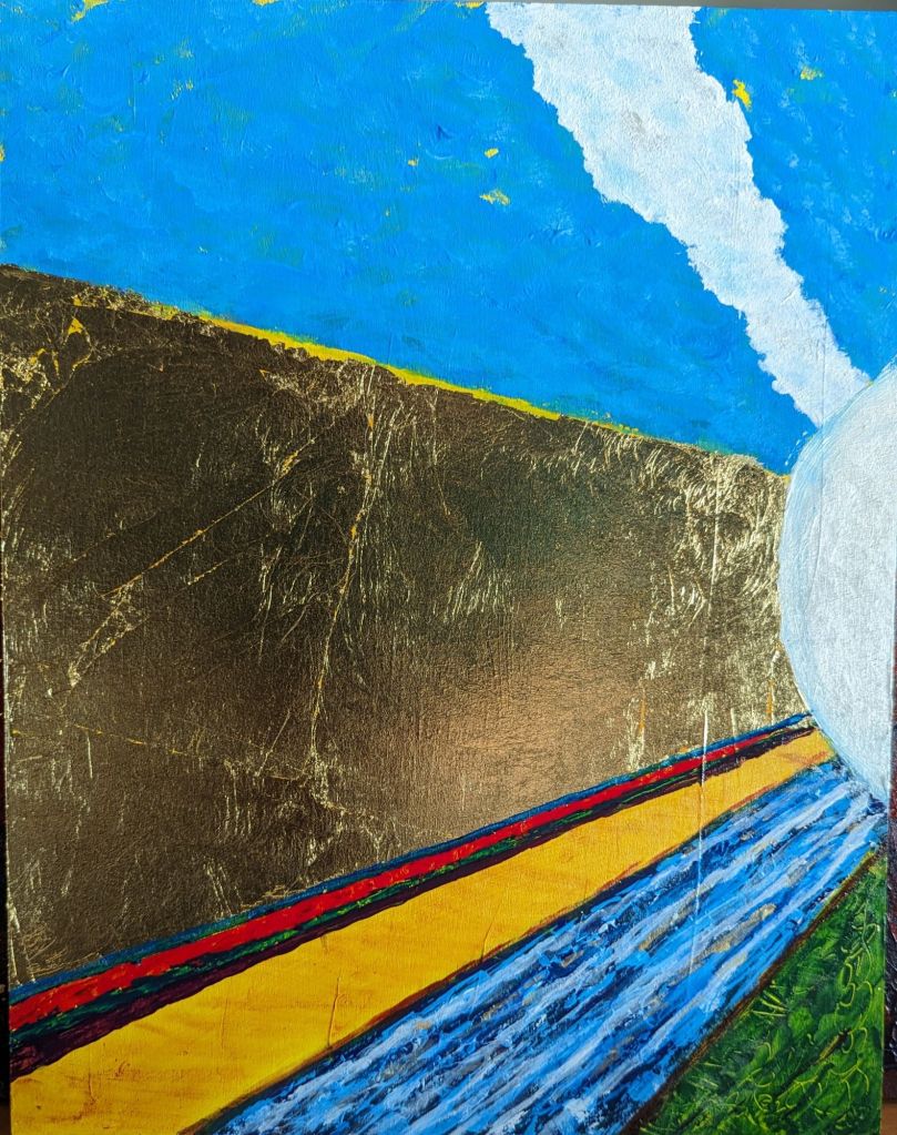 At a year long church study we were encouraged to make a personal statement of our faith. I wrote and created a triptych of three acrylic paintings depicting creation, redemption and renewal.