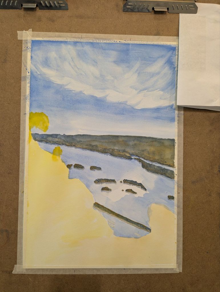 This view based on my daughter’s photo features cirrus clouds and a horseshoe shaped cluster of islands. I’ve noticed that shape before. I’m guessing it has to do with sediment and the current.