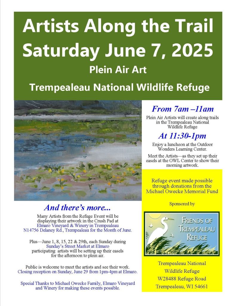 The Friends of the Trempeleau National Wildlife Reserve hold a Plein Air event every June. There is time to sign up by March 1.