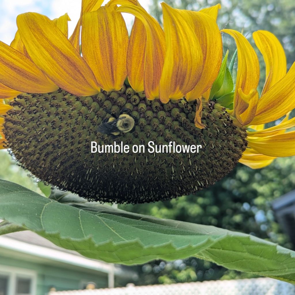 In an 18 inch row along our driveway we cast wild flowers. Yesterday the bumble bees loved the corn flower and the sunflower.