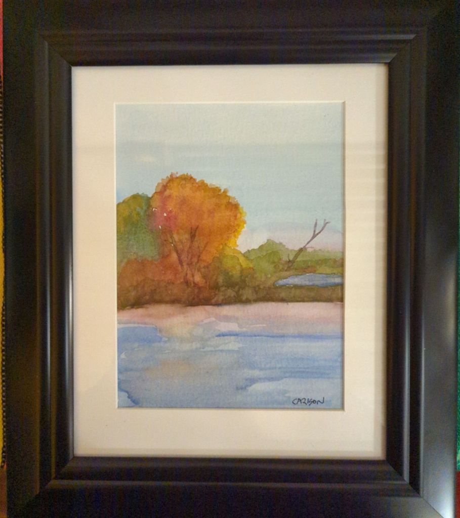 In late October I was taking pictures of Green Island, La Crosse, at sunset. I wanted to capture the late light of a Fall evening in my watercolor.