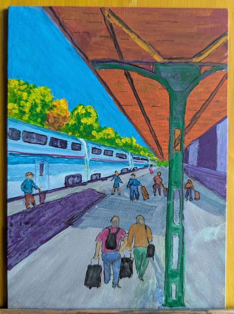 I tried this as a Plein Air watercolor, and was not satisfied with the result. I returned to it with gouache and a photo reference.