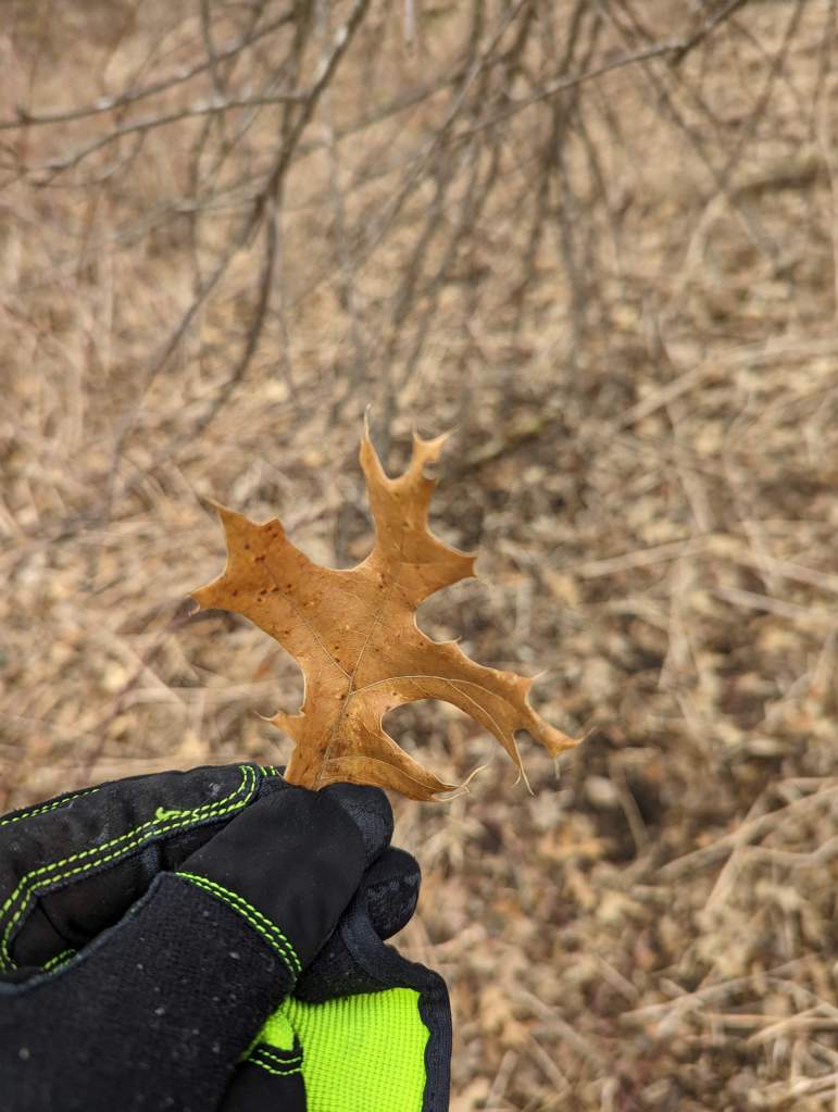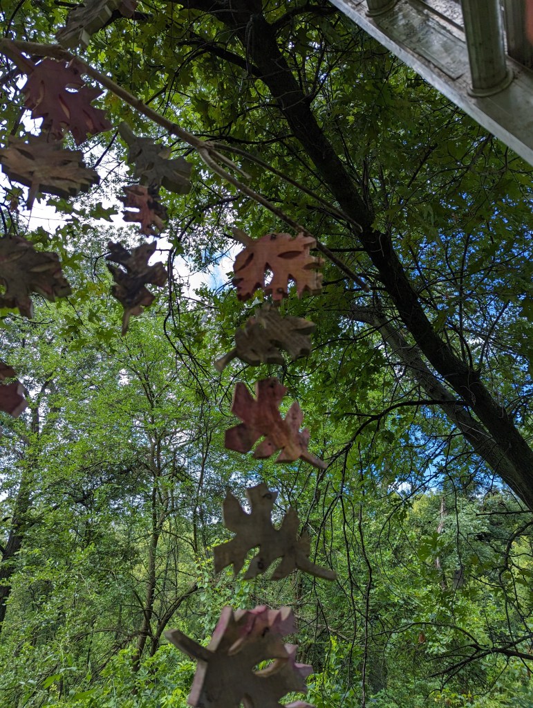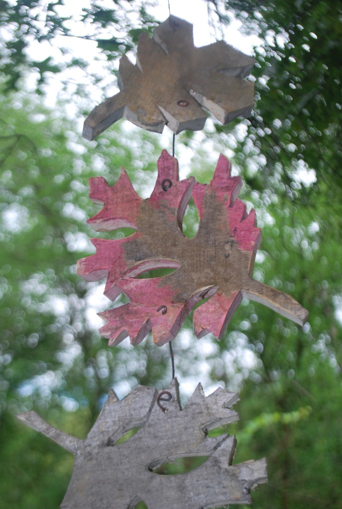 These leaves are cut from trees felled from the grounds here at the Farley Center. The leave shapes are from this tree. The colors are from the weather and natural stains.