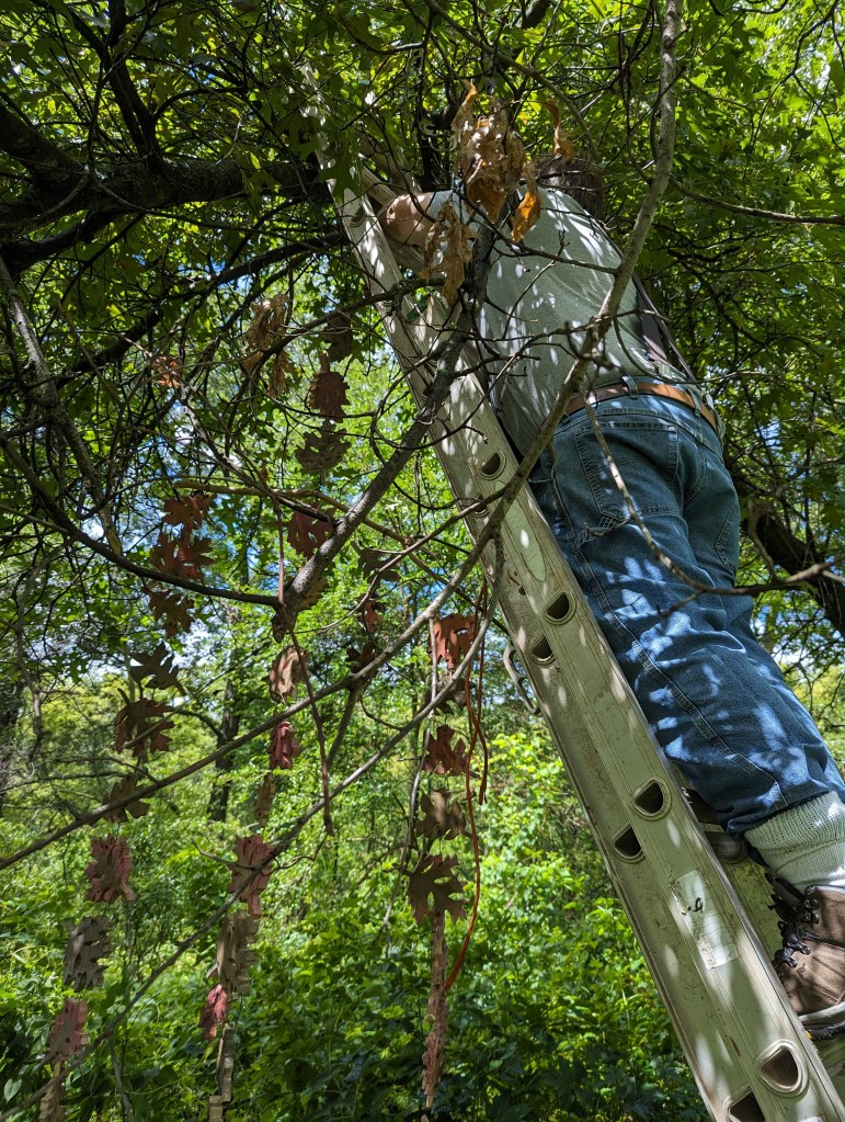 I was relieved to see that my installation was intact. In fact nature joined in when a vine started to climb upwards.