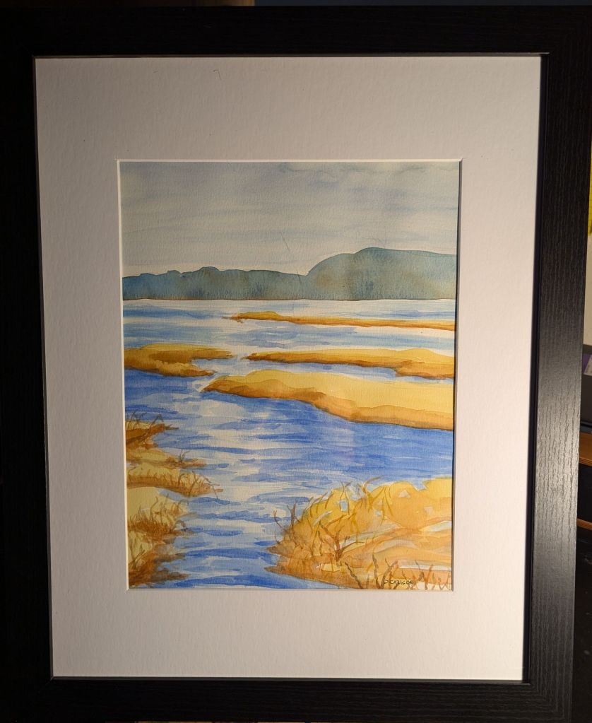 This painting is from a patio behind the Nature Place at Myrick Park. The marsh was full of algae.