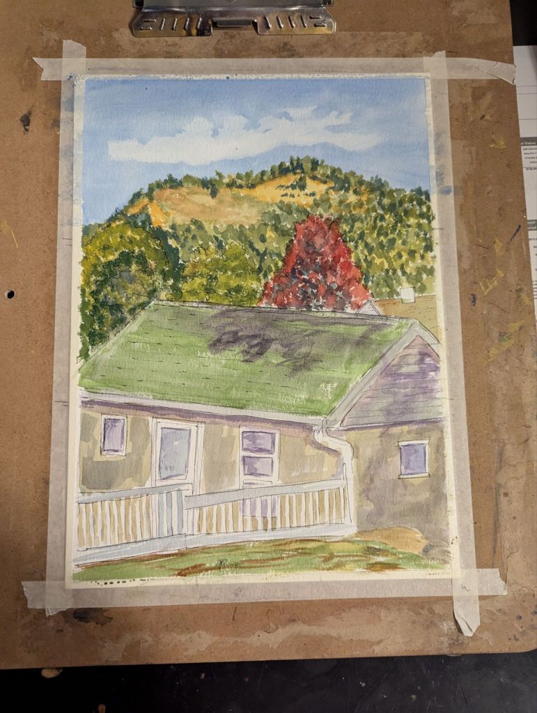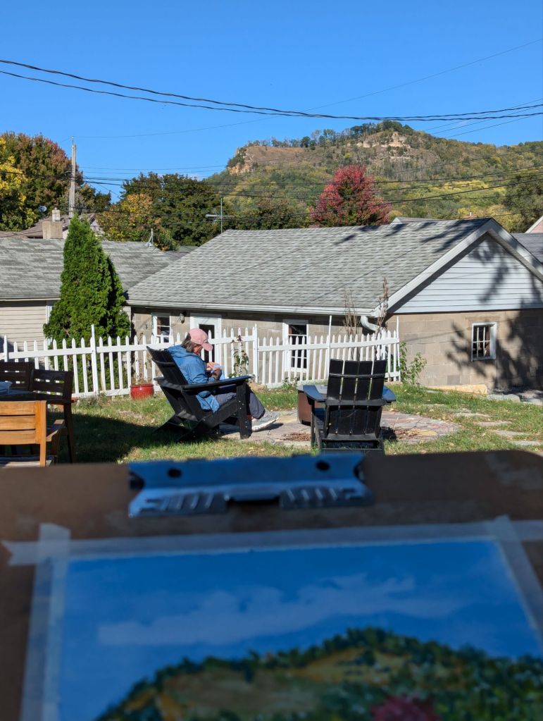 Back yard view The two of us painted while Jerry started to sashiko stitch the view.