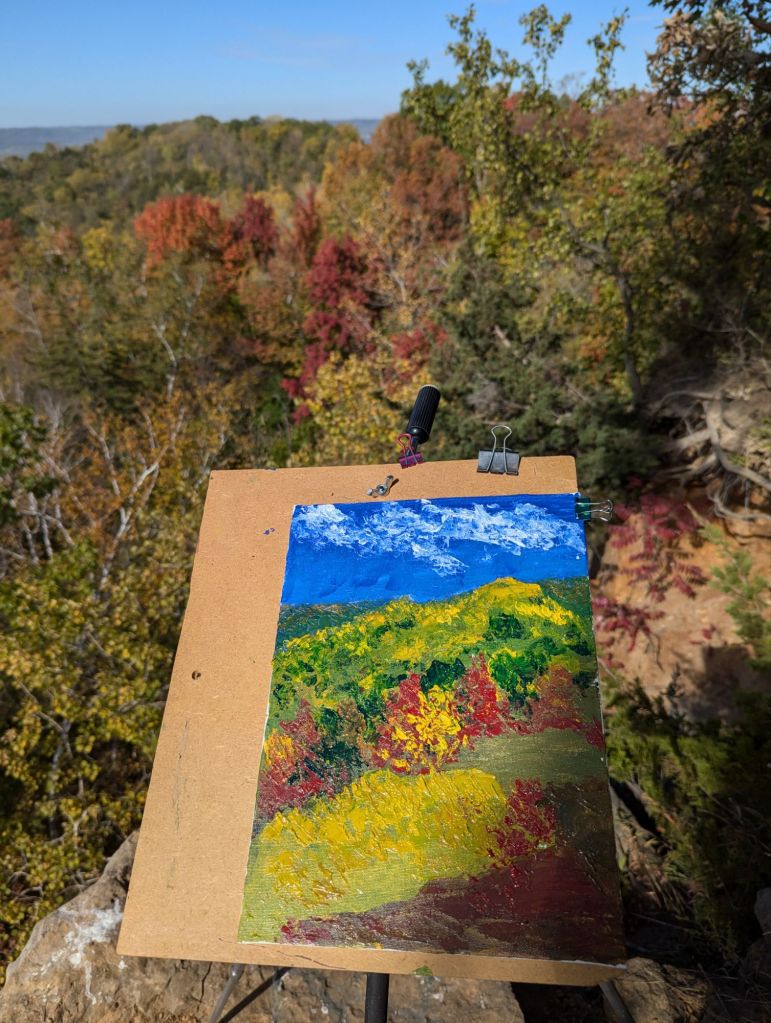 Acrylic Plein Air is a trip. It tends to dry on the pallet, but takes its time on the canvas.